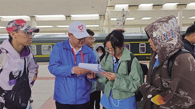 “到西部去、到基層去、到祖國和人民最需要的地方去。”7月24日,2023屆大學(xué)生西部計(jì)劃西藏專項(xiàng)志愿者陸續(xù)抵藏報(bào)到。現(xiàn)場,共青團(tuán)西藏自治區(qū)委員會(huì)組織了前幾屆志愿者在火車站接站?!拔沂菑暮幽线^來做志愿者的,在西藏已經(jīng)2年了,一直在自治區(qū)經(jīng)信廳上班。今天是過來接學(xué)弟學(xué)妹們的,幫助他們登記報(bào)到?!表n義凡說。中午11點(diǎn)左右,火車進(jìn)站,志愿者們陸續(xù)前來報(bào)到?!斑@是我第一次來西藏,還是以志愿者的身份,我會(huì)好好工作,為西藏的發(fā)展作出自己的貢獻(xiàn)?!眮碜蕴旖虻奶锟苏f。