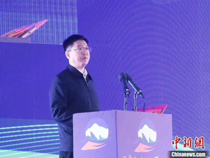 圖為果洛州委副書(shū)記、州長(zhǎng)葉萬(wàn)彬致辭發(fā)言。果洛州委宣傳部供圖
