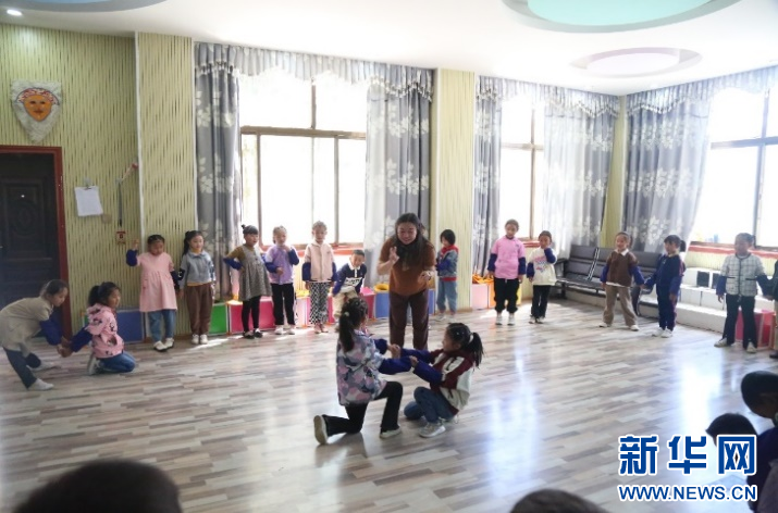 舞蹈教師孫曉哲在拉薩市北京小學(xué)指導(dǎo)學(xué)生舞蹈動作
