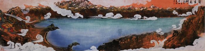 劉洋認(rèn)為,中華藝術(shù)的進(jìn)步發(fā)展,是基于各個(gè)民族在交往、交流、交融中的共同進(jìn)步和發(fā)展。他表示,在唐卡在歷史發(fā)展中,也曾受到唐代繪畫(huà)風(fēng)格的影響,吸收中原內(nèi)地山水畫(huà)和工筆畫(huà)的規(guī)律及技法,畫(huà)中也融入了中原青綠山水樣式。如今,他時(shí)常會(huì)在國(guó)畫(huà)山水創(chuàng)作中,融入一些唐卡繪畫(huà)元素,為畫(huà)作整體增添韻味。