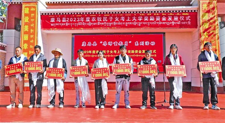 9月16日,日喀則市康馬縣舉辦2023年度農(nóng)牧民子女考上大學獎勵資金發(fā)放儀式,共為考取本科院校的151名學生、考取專科院校的124名學生兌現(xiàn)獎勵資金166.5萬元。據(jù)統(tǒng)計,康馬縣自2016年實施農(nóng)牧民子女考上大學獎勵政策以來,共為1812名考上大學的康馬籍農(nóng)牧民子女應(yīng)屆高中畢業(yè)生兌現(xiàn)獎勵資金1477.1萬元,助力廣大康馬籍農(nóng)牧民子女實現(xiàn)大學夢想。