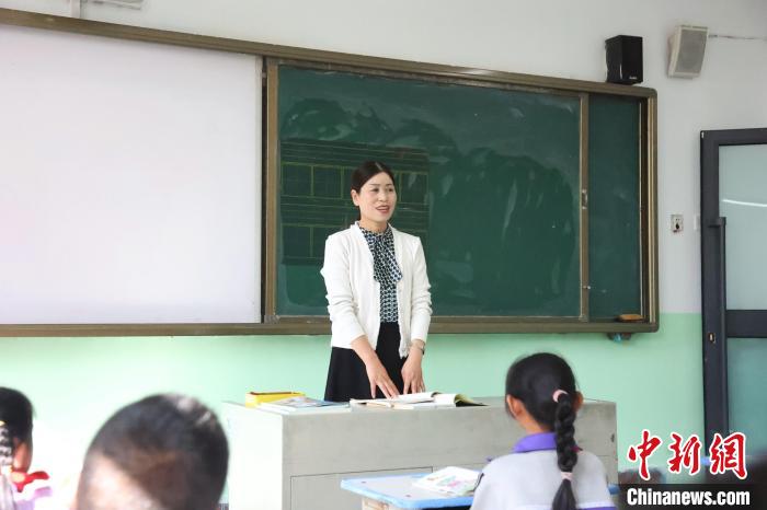 圖為張雪蓮在西寧市湟中區(qū)多巴鎮(zhèn)丹麻寺小學的教室內上課。張?zhí)砀?攝