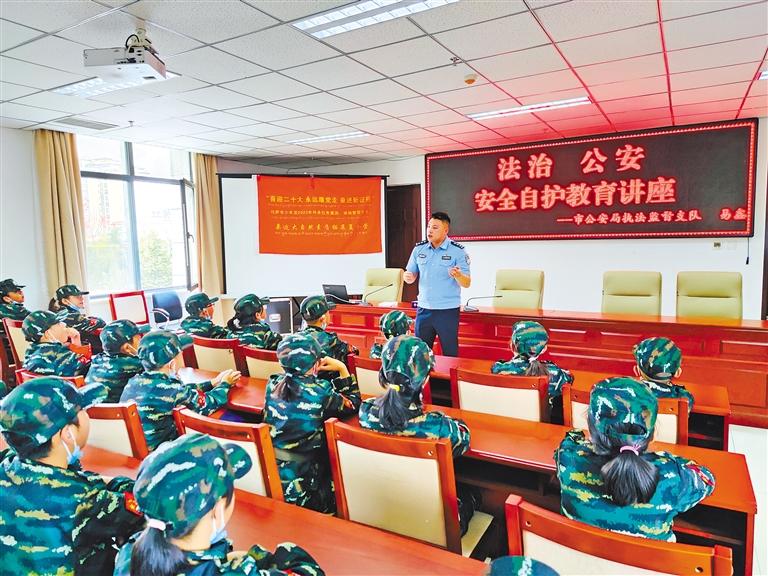 圖為拉薩市公安局執(zhí)法監(jiān)督支隊民警為少年宮學(xué)員開展安全自護教育講座。