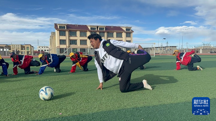 10月13日,在西藏那曲市班戈縣中石化小學,學生在操場上做運動。新華社發(fā)(王敬 攝)