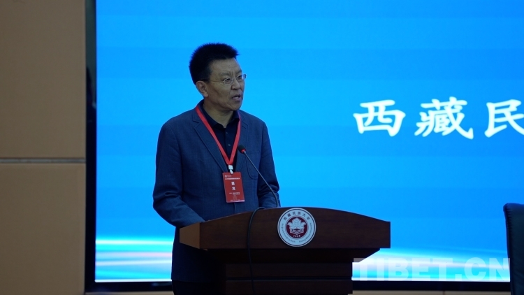 圖為西藏民族大學(xué)黨委副書記、校長(zhǎng)羅旺次仁代表學(xué)校致辭 攝影:陳浩力