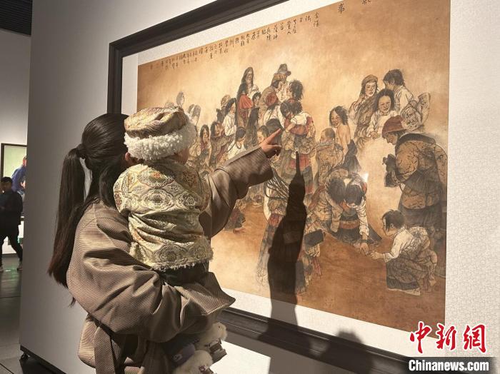 圖為觀眾正在欣賞展覽中的美術(shù)作品。拉巴卓瑪 攝