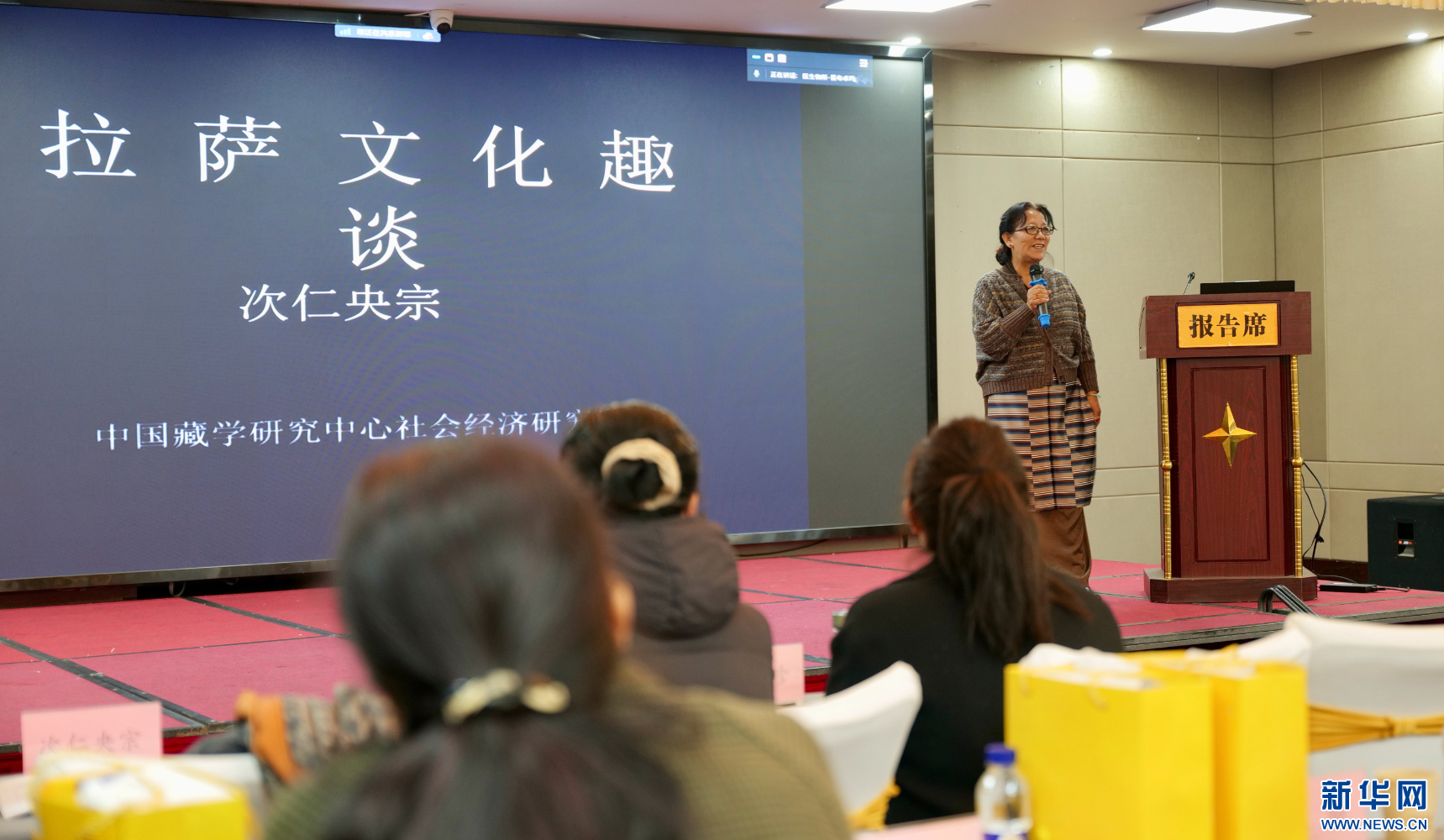 11月13日,中國藏學研究中心研究員次仁央宗做關于拉薩文化的演講。新華網 柑丹鴦琦 攝