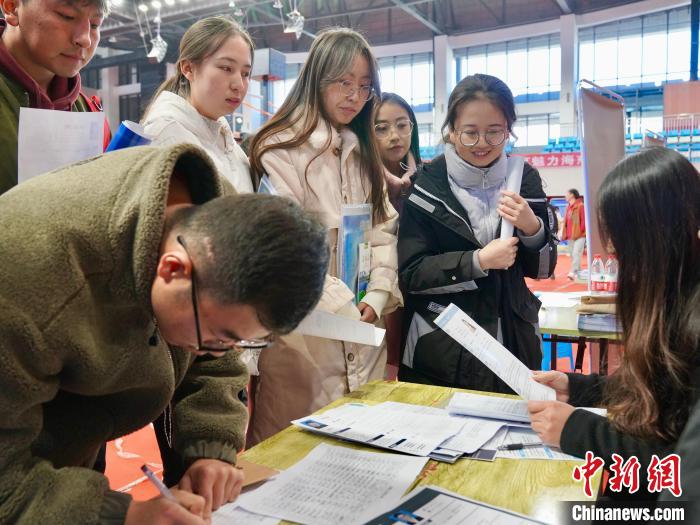 圖為招聘人員為大四畢業(yè)生介紹相關(guān)崗位信息。劉洋 攝