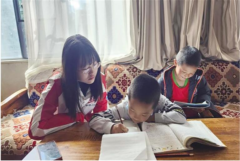 支教老師開(kāi)展學(xué)業(yè)輔導(dǎo)、自護(hù)教育、思想引領(lǐng)、心理輔導(dǎo)等志愿服務(wù)