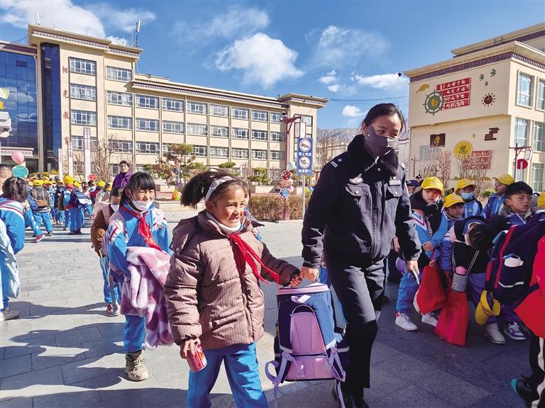 站在學(xué)校門(mén)口,等待孩子的家長(zhǎng)央金感觸頗深,她告訴記者,每次開(kāi)學(xué)前、開(kāi)學(xué)時(shí)、開(kāi)學(xué)后,都能看到民警們忙碌的身影。為學(xué)校家長(zhǎng)提供幫助,為學(xué)生消除安全隱患,營(yíng)造了安全、和諧、文明的校園環(huán)境,十分感謝他們。“今天報(bào)到啦,我們看到警察叔叔和阿姨就覺(jué)得很安心、很開(kāi)心?!睂?shí)驗(yàn)小學(xué)3年級(jí)10班學(xué)生白瑪娜薩說(shuō)。