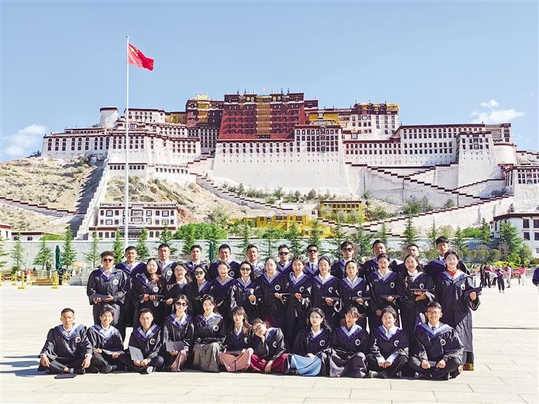 拍攝畢業(yè)照則是高校每一屆畢業(yè)生的“狂歡”。盛夏里,高校畢業(yè)生們身穿學士服或獨具特色的藏裝,相互獻哈達,在布達拉宮廣場、在校園、在羅布林卡、在拉薩河邊留下青春最美的樣子,定格炙熱的青春歲月。