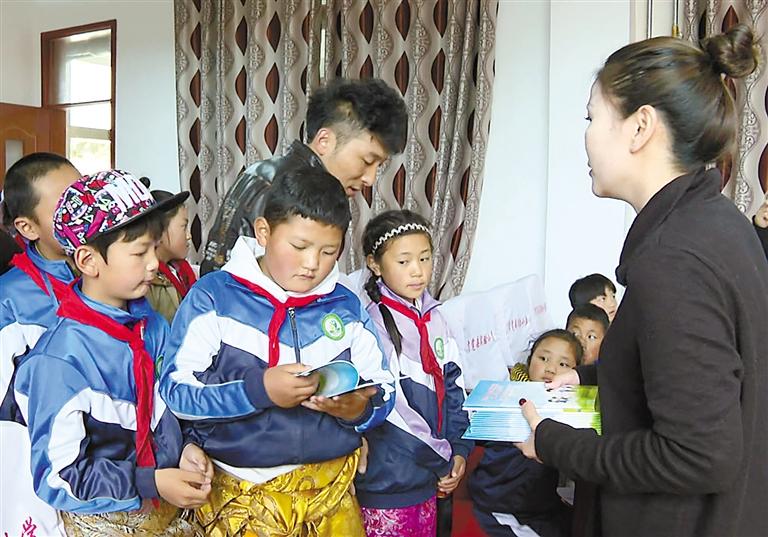 圖為貢覺縣法院工作人員向?qū)W生講解禁毒知識(shí)。記者 平措郎加 通訊員 阿漠依依 攝