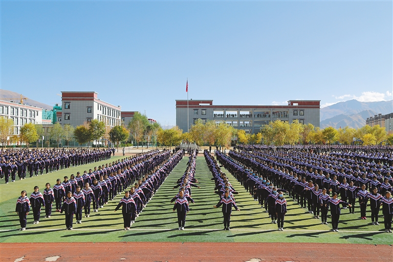 圖為拉薩實驗中學的學生在做課間操。(圖片由江蘇援藏指揮部提供)