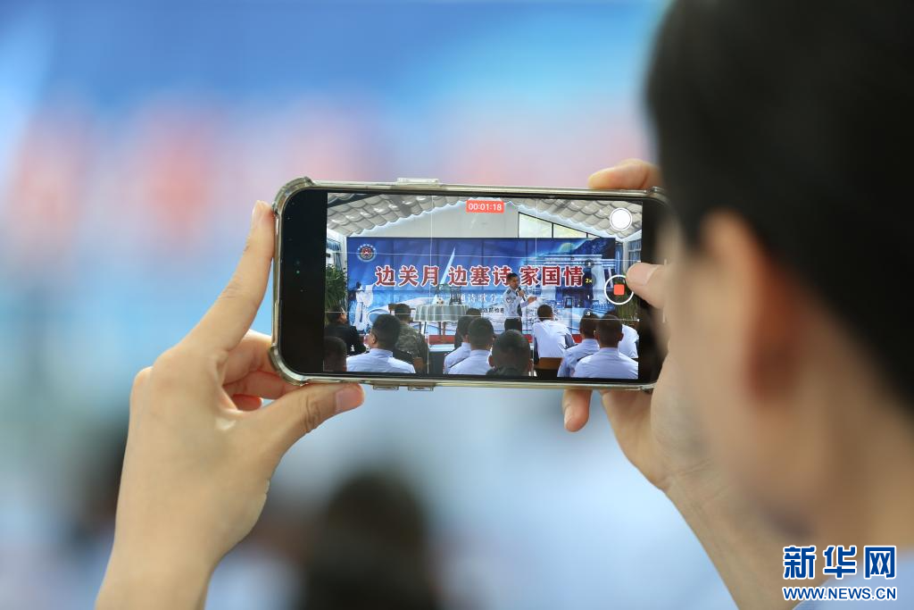 觀看詩歌分享會的民警用手機(jī)錄制精彩瞬間(9月11日攝)。新華社發(fā)(肖富貴 攝)