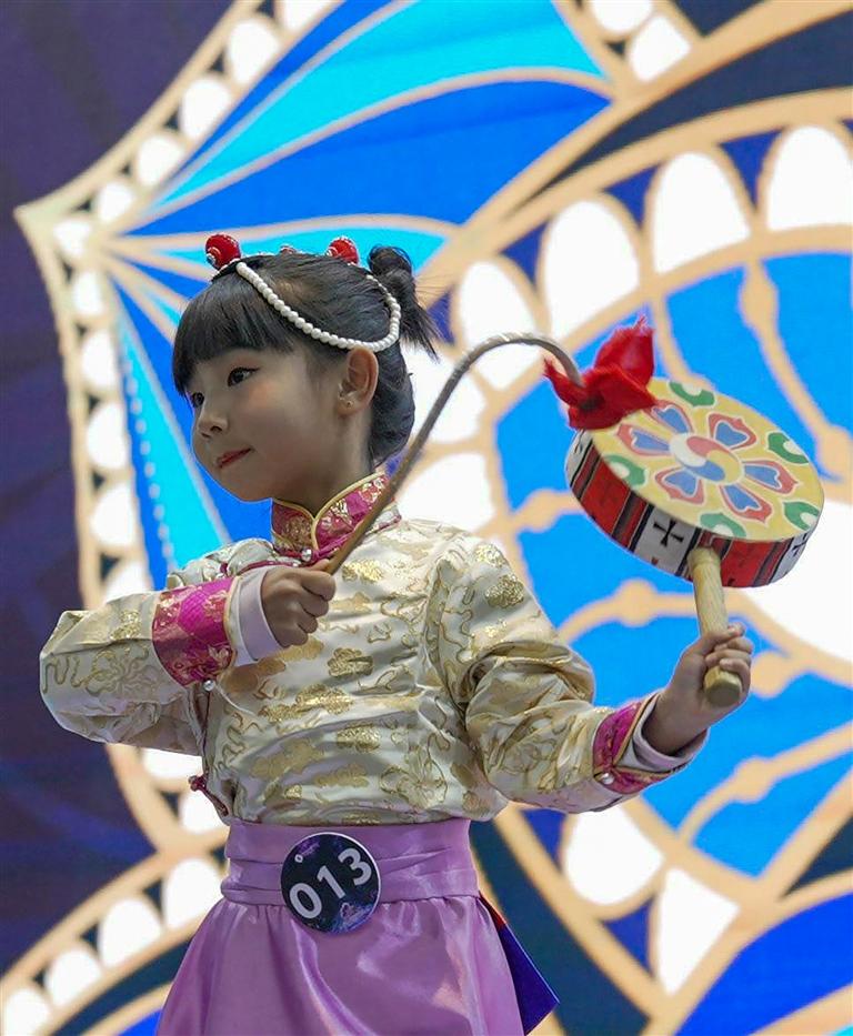 初賽現(xiàn)場,小選手們身著華麗的藏族服飾,隨著音樂的節(jié)奏翩翩起舞。他們每一個動作都充滿了力量與美感,將熱巴舞的歡快與熱情表現(xiàn)得淋漓盡致。其中,一位名叫馮詩雅的8歲漢族女孩尤為引人注目。她生動的表情和自信的舞臺表現(xiàn)力,贏得了現(xiàn)場觀眾的掌聲和評委的高度評價。