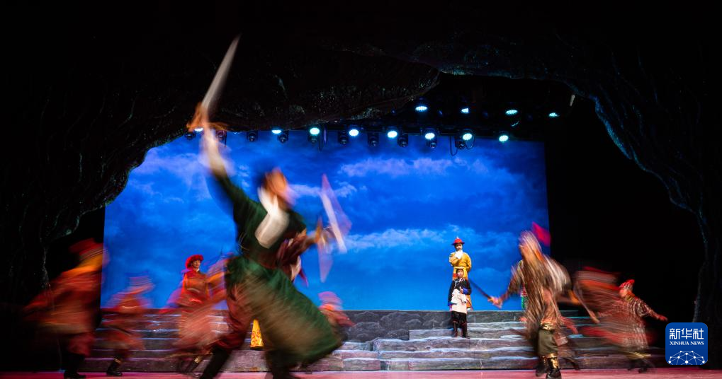 西藏首部少兒舞臺(tái)劇藏戲《頓月頓珠》演出現(xiàn)場(chǎng)(2月11日攝)。新華社記者 丁增尼達(dá) 攝?
