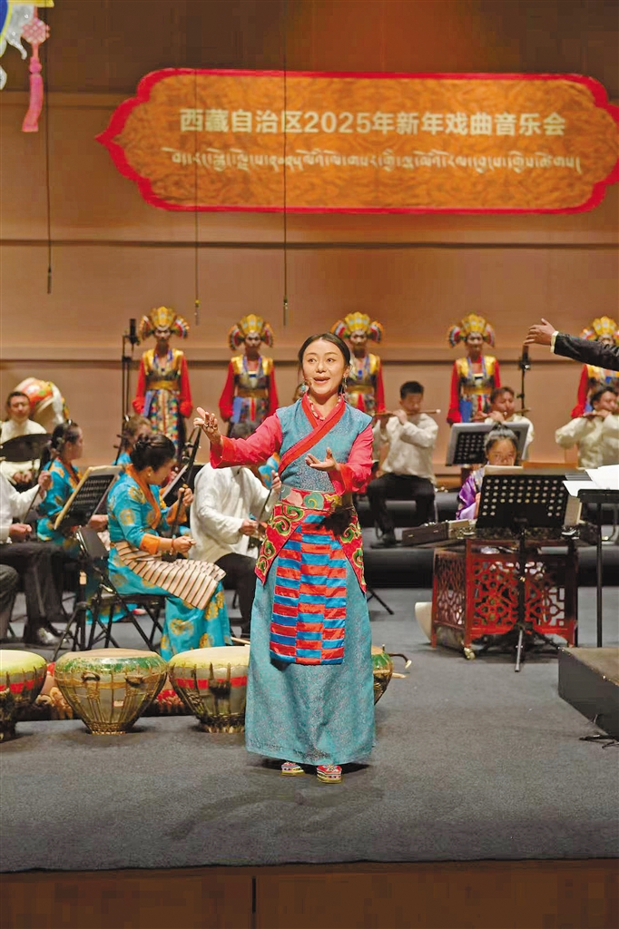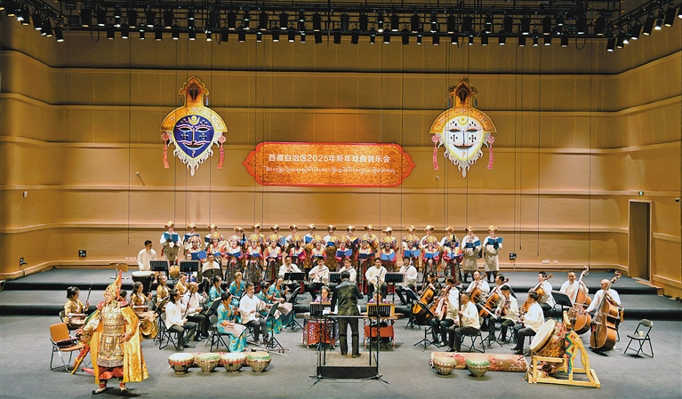 2月24日至25日,西藏自治區(qū)藏劇團(tuán)與自治區(qū)歌舞團(tuán)聯(lián)袂獻(xiàn)上西藏自治區(qū)2025年新年戲曲音樂(lè)會(huì)。音樂(lè)會(huì)由開(kāi)場(chǎng)《扎西德勒》和尾聲《吉祥如意》以及《萬(wàn)千思緒》《古韻新聲》《永續(xù)輝煌》三個(gè)篇章組成,包含十余個(gè)新創(chuàng)與經(jīng)典節(jié)目,為觀(guān)眾呈現(xiàn)了一場(chǎng)視覺(jué)與聽(tīng)覺(jué)的盛宴。