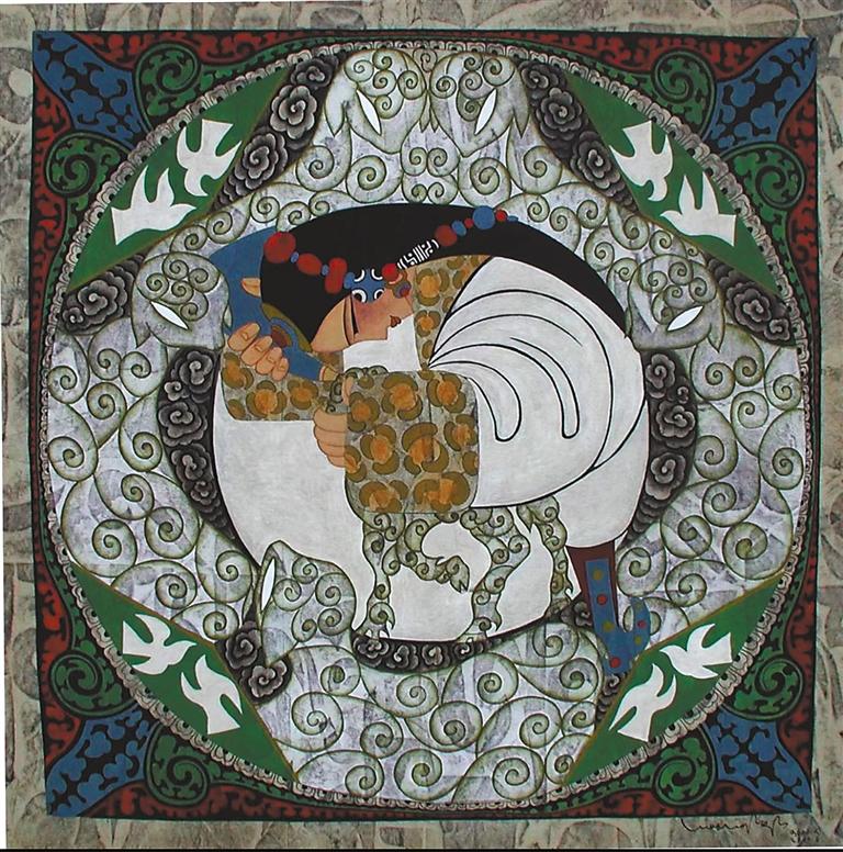 1983年,命運(yùn)的轉(zhuǎn)機(jī)再次降臨。西藏文化部門(mén)編纂《西藏舞蹈集成》,急需插圖畫(huà)家,“會(huì)畫(huà)畫(huà)的舞者”昂桑被借調(diào),并派至蘇州培訓(xùn)。這段脫離舞蹈訓(xùn)練的經(jīng)歷,讓他明確內(nèi)心方向。1985年,他考入西藏大學(xué)藝術(shù)系,成為唐卡大師丹巴繞旦首批弟子,在導(dǎo)師的指導(dǎo)下,他觸摸到千年礦物顏料的細(xì)膩,領(lǐng)悟了傳統(tǒng)藝術(shù)的精神內(nèi)核。