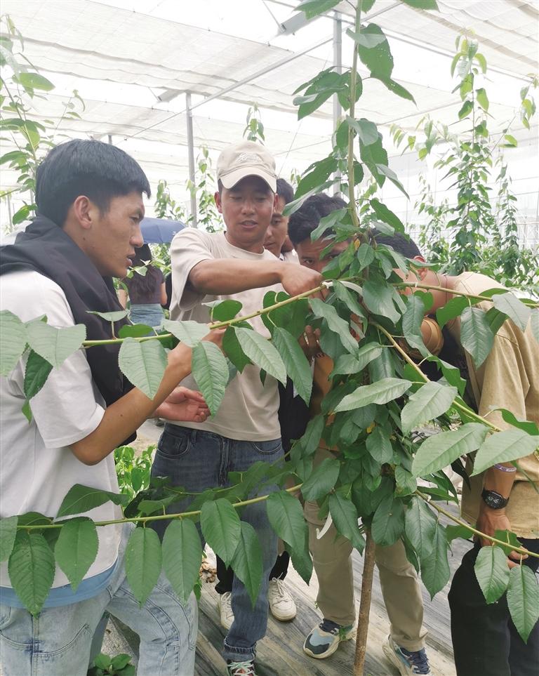 剛進(jìn)入公司時(shí),格桑群培還是農(nóng)業(yè)領(lǐng)域的“小白”。為了打好基礎(chǔ),他跟著公司生產(chǎn)技術(shù)人員在果園里摸爬滾打,學(xué)習(xí)果樹栽培、修剪技術(shù)等。休息時(shí)間,別的同事在娛樂放松,他卻一頭扎進(jìn)技術(shù)資料里,如饑似渴地學(xué)習(xí)有關(guān)果樹標(biāo)準(zhǔn)化種植的知識(shí)?!肮麡湓耘嗑拖耩B(yǎng)育孩子,需要足夠的細(xì)心和耐心。”格桑群培常常這樣說,也一直這樣做。他不怕苦、不怕累,從最基層的臟活、累活干起,憑借著自己的努力和上進(jìn),逐漸成長(zhǎng)為公司的技術(shù)骨干,如今已擔(dān)任生產(chǎn)技術(shù)部副部長(zhǎng)。