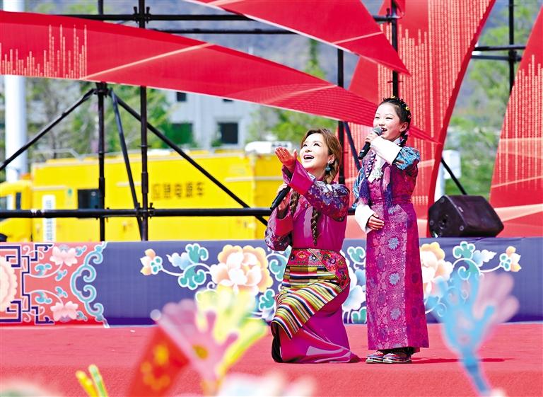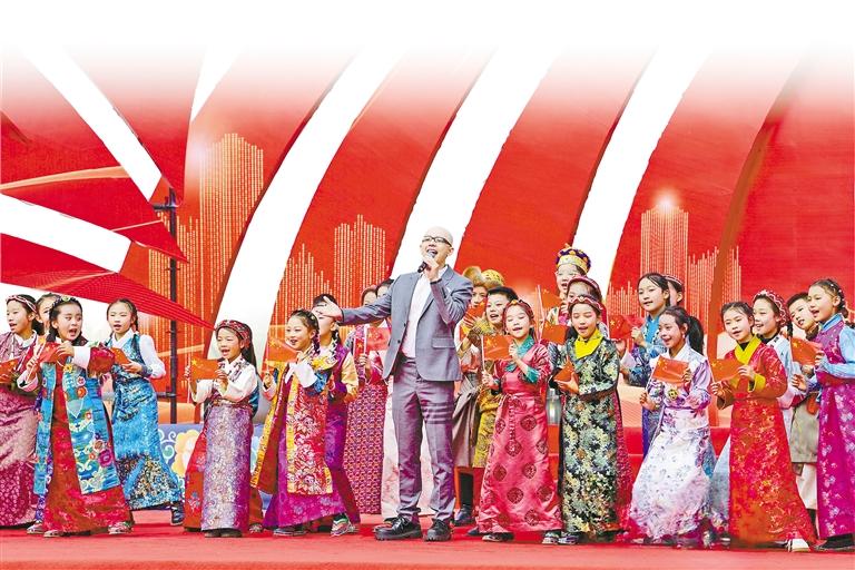 歌手平安與西藏珠峰少年合唱團(tuán)帶來歌曲《我愛你中國》。 (其余圖片均由記者 唐斌 白瑪澤旺 王敏 丹增群培 旦增蘭澤 攝)