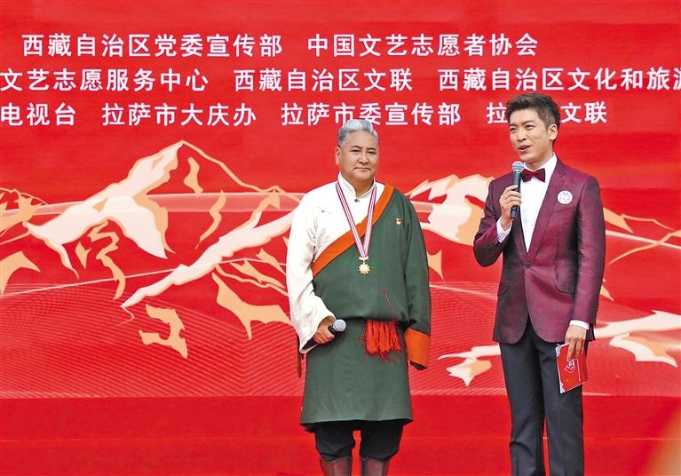 5月23日,在中國文藝志愿者服務(wù)日到來之際,由中國文聯(lián)、西藏自治區(qū)黨委宣傳部、中國文藝志愿者協(xié)會(huì)共同主辦的“與人民同行”慰問演出在西藏會(huì)展中心廣場隆重舉行。這場慶祝西藏自治區(qū)成立60周年的文藝盛宴,在歌舞《鼓舞西藏》激昂的節(jié)奏中拉開帷幕。