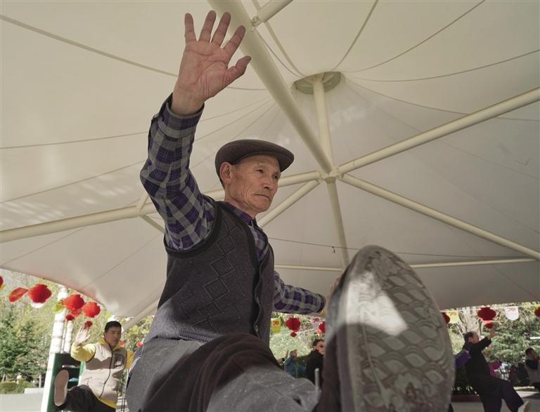 老年人在宗角祿康公園健身。