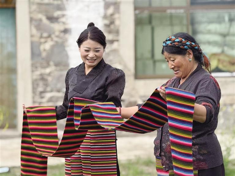 “好的技藝和原料是基礎(chǔ),創(chuàng)新的產(chǎn)品是敲門磚,走好這兩步,再打響知名度,我們的經(jīng)濟效益才能更上一層樓?!睘榱俗尭嗳肆私獍畹?,旦增卓嘎帶著合作社的產(chǎn)品頻繁亮相藏博會等平臺,用現(xiàn)場編織演示和文化講解,讓世界讀懂“彩虹圍裙”的故事。