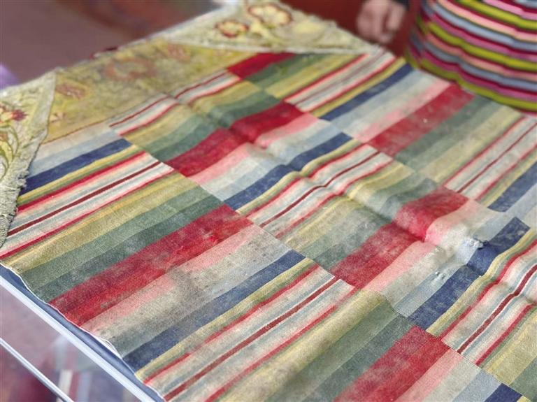 嘎日的丈夫格桑是國家級非物質(zhì)文化遺產(chǎn)邦典編織技藝第三代傳承人,他生前曾說過:“邦典不能只掛在墻上,要穿在人身上,更要走進市場里?!?/p>