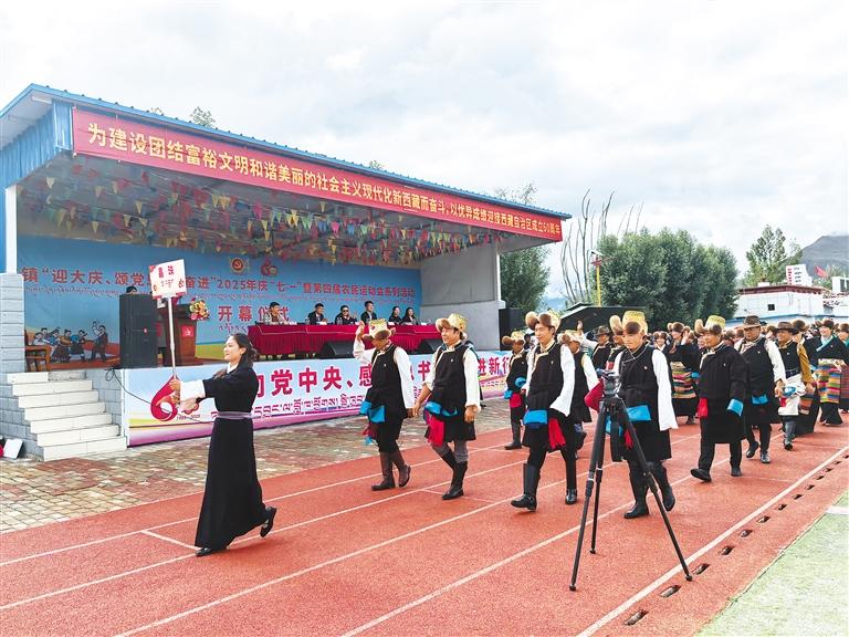 圖為“迎大慶、頌黨恩、共奮進”暨第四屆農(nóng)牧民運動會開幕式。通訊員 普布次仁 記者 丹增平措 攝
