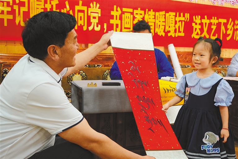 近日,林芝市文聯(lián)在巴宜區(qū)林芝鎮(zhèn)嘎拉村開展“牢記囑托心向黨 書畫寄情暖嘎拉”送文藝下鄉(xiāng)活動(dòng)。書法家們揮毫潑墨,將飽含著美好祝福與深厚情誼的書法作品贈(zèng)送給村民;美術(shù)家和攝影家則帶來(lái)記錄嘎啦村發(fā)展變遷、村民們幸福生活的作品。
