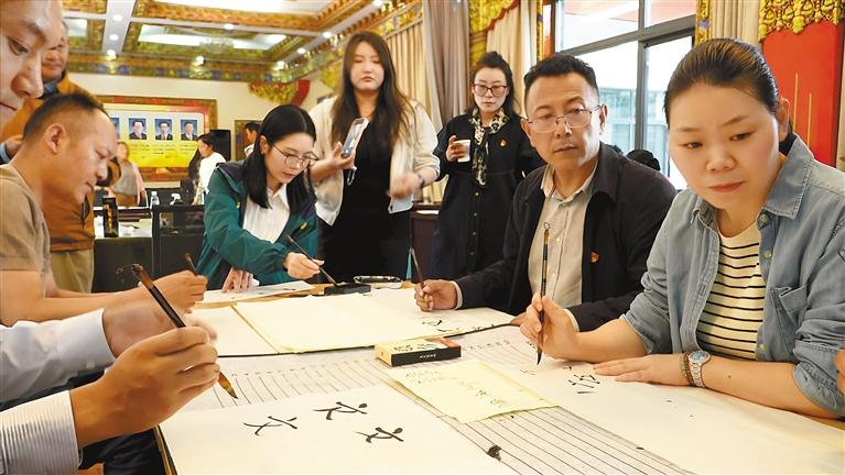 近日,拉薩市城關(guān)區(qū)扎細(xì)街道扎細(xì)新村社區(qū)黨總支聯(lián)合國網(wǎng)西藏超高壓分公司開展“墨韻連心 共書民族團(tuán)結(jié)光明路”藏漢書法交流體驗活動。
