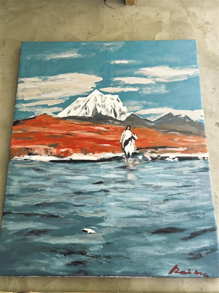 圖為白瑪次仁作品《雪山下的唐吉訶德》。