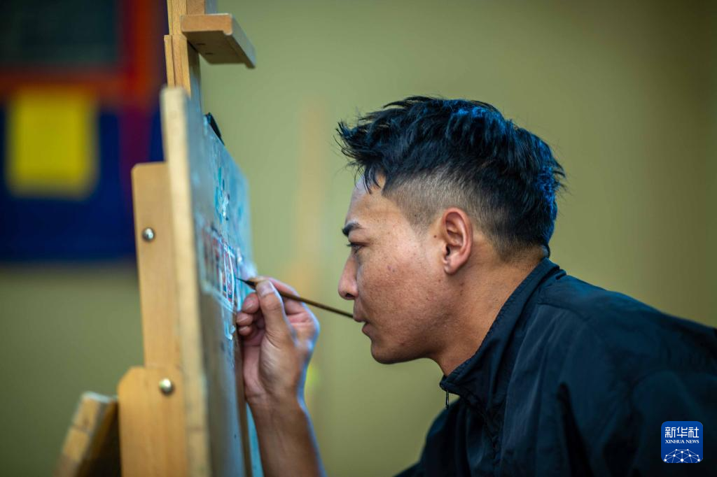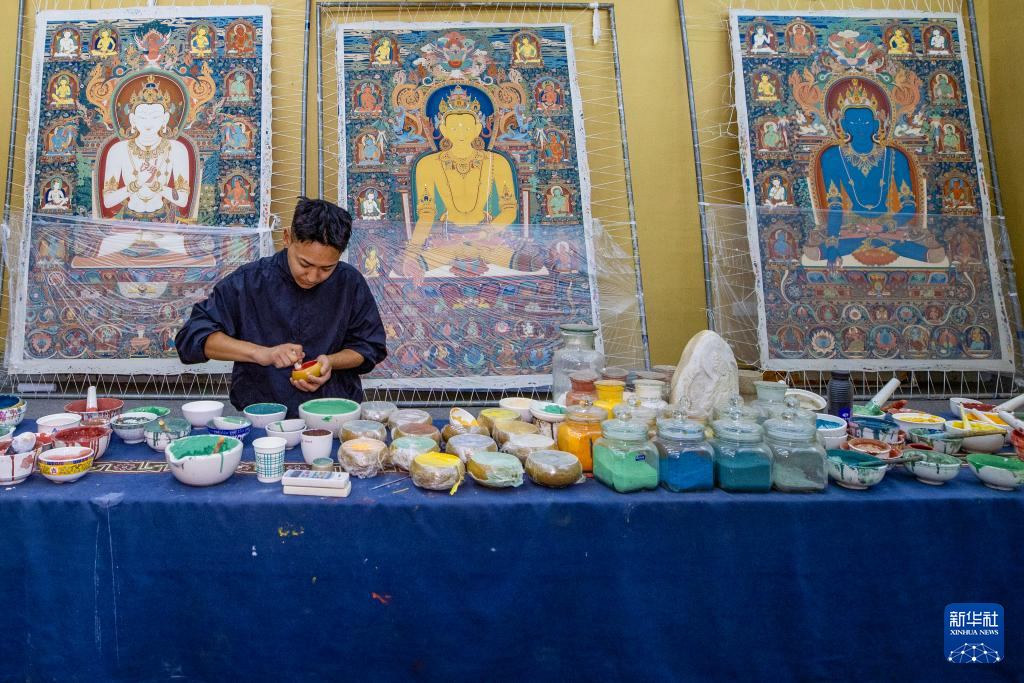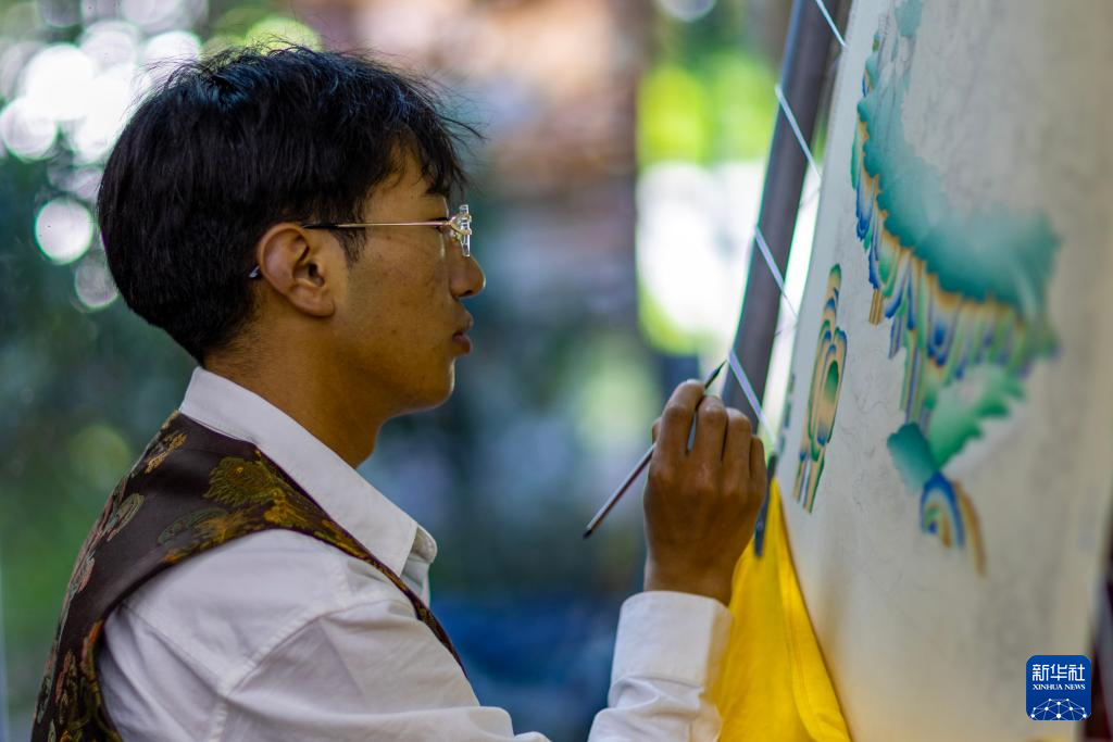 8月6日,一名畫師在繪制唐卡。藏族唐卡(齊吾崗派)入選國家級非物質(zhì)文化遺產(chǎn)代表性項目名錄。新華社記者 旦增尼瑪曲珠 攝 ??