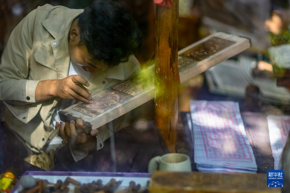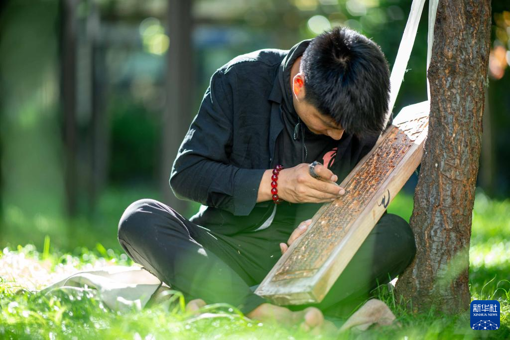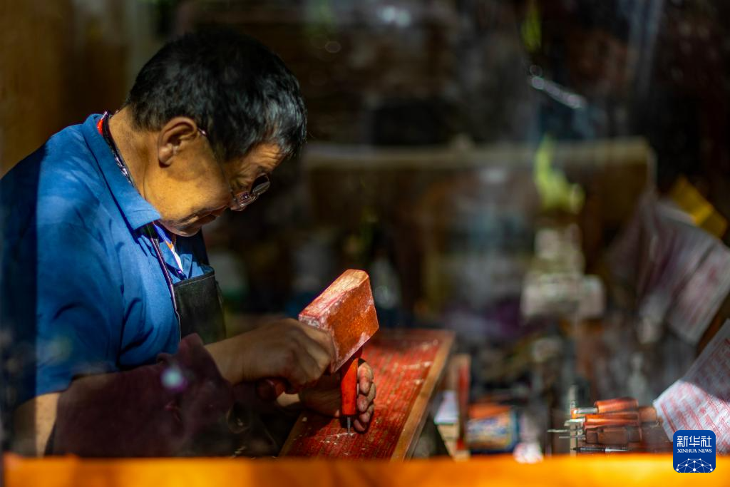 ?8月6日,一名雕刻師在雕刻中。西藏雪巴康雕版印刷制作技藝入選西藏自治區(qū)級非物質(zhì)文化遺產(chǎn)代表性項目名錄。新華社記者 旦增尼瑪曲珠 攝 ??