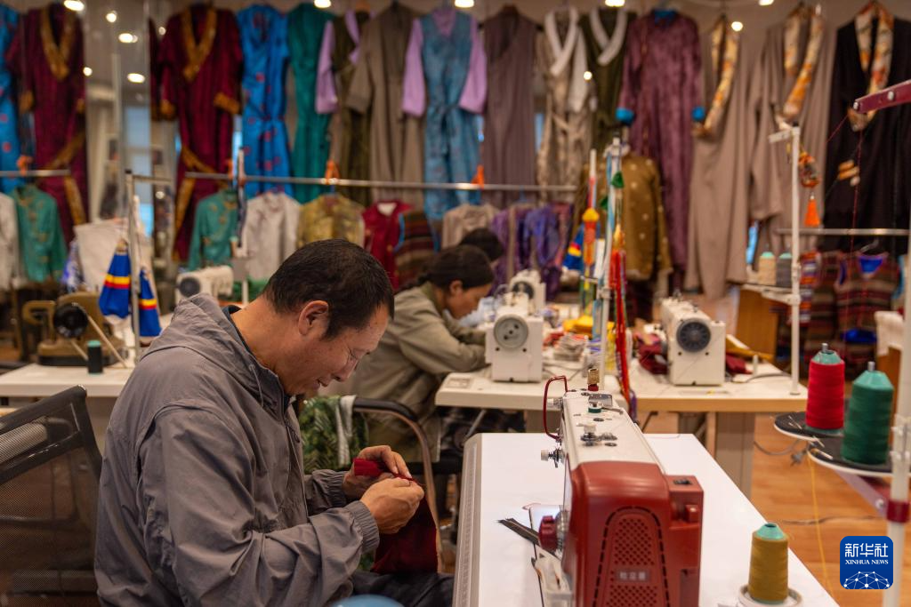 8月6日,服裝師在制作拉薩服飾。拉薩服飾入選西藏自治區(qū)級非物質(zhì)文化遺產(chǎn)代表性項目名錄。新華社記者 旦增尼瑪曲珠 攝 ??