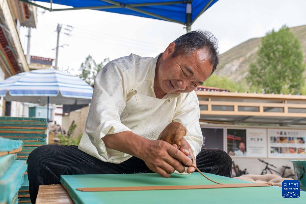 ?8月6日,一名雕刻師在工作中。西藏傳統(tǒng)雕刻修復(fù)技藝入選西藏自治區(qū)級非物質(zhì)文化遺產(chǎn)代表性項目名錄。新華社記者 旦增尼瑪曲珠 攝 ??