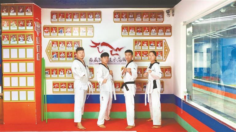 圖為西藏跆拳道運動員次仁平措、嘎瑪多杰、李洋洋、小卓瑪(由左至右)。西藏日報記者 鄭璐 見習記者 平措諾吉 攝