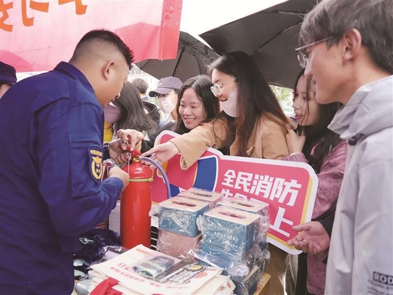 活動(dòng)現(xiàn)場(chǎng),講師團(tuán)成員與學(xué)生們開(kāi)展了消防常識(shí)速問(wèn)速答互動(dòng),現(xiàn)場(chǎng)氣氛熱烈。答對(duì)問(wèn)題的同學(xué)可以領(lǐng)取獎(jiǎng)品,獎(jiǎng)品包括指甲盒套裝、籃球、消防公仔、保溫杯、手機(jī)支架等精美消防文創(chuàng)產(chǎn)品,吸引了眾多同學(xué)踴躍參與。