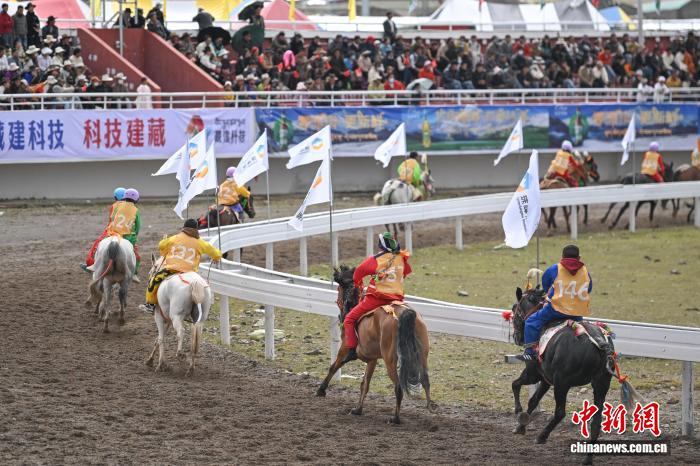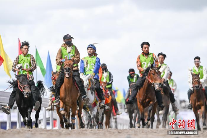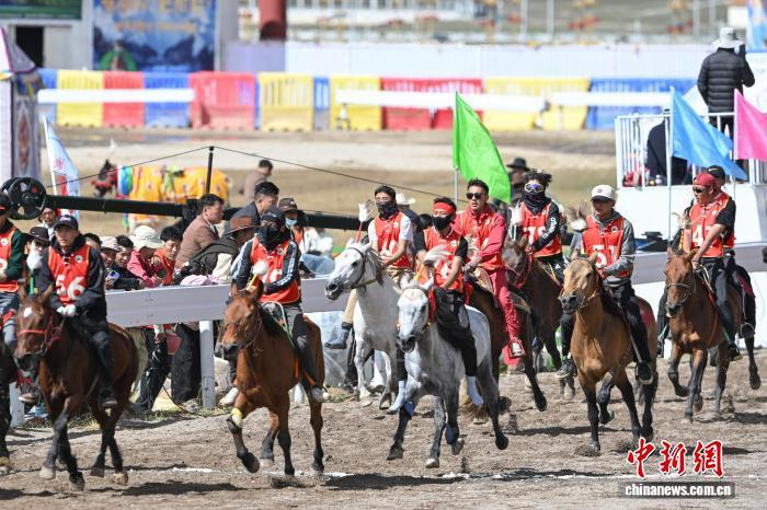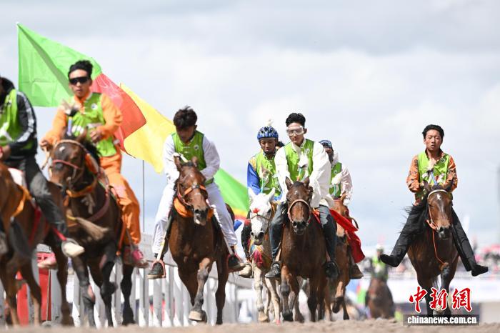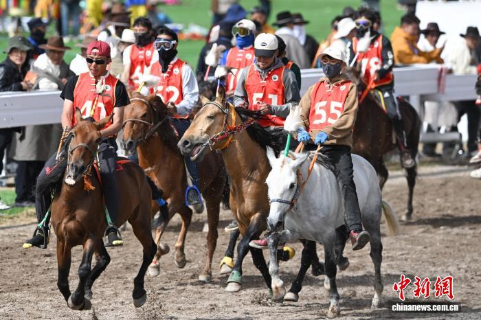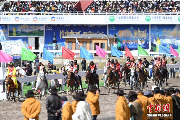 9月6日,西藏自治區(qū)那曲市恰青賽馬節(jié)進(jìn)入第二天,格薩爾賽馬場(chǎng)賽事精彩不斷。場(chǎng)內(nèi),1.38米以下小馬展開10000米速跑、10000米走馬、12000米走馬決賽,1.38米以上1.45米以下大馬角逐10000米速跑決賽。為觀眾帶來(lái)速度與耐力的草原盛宴,盡顯藏北草原賽馬文化的獨(dú)特魅力。圖為1.38米以上1.45米以下大馬速度賽比賽現(xiàn)場(chǎng)。中新社記者 貢嘎來(lái)松 攝