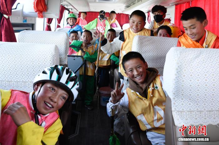 圖為參賽騎手乘大巴前往起跑點(diǎn)。中新社記者 貢嘎來(lái)松 攝