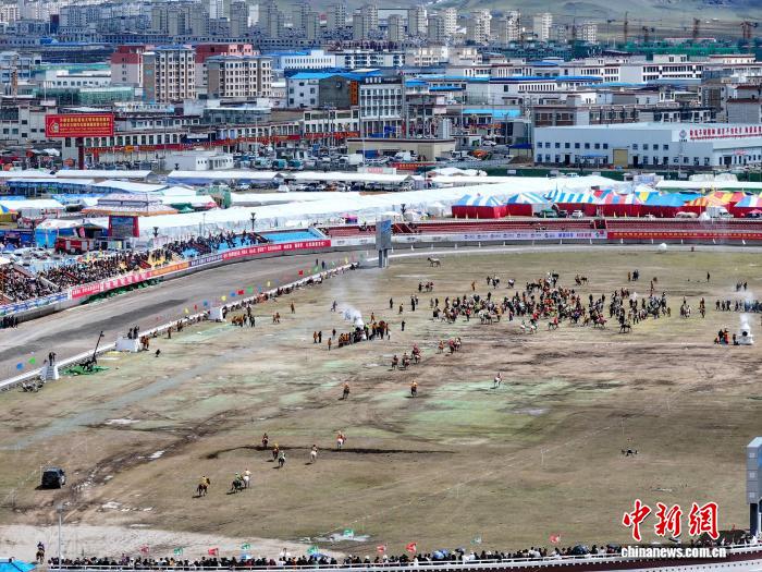 圖為恰青賽馬節(jié)傳統(tǒng)大跑決賽現(xiàn)場(chǎng)(無(wú)人機(jī)照片)。中新社記者 貢嘎來(lái)松 攝