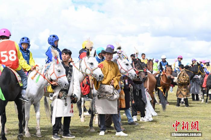 圖為參賽選手準(zhǔn)備參加恰青賽馬節(jié)傳統(tǒng)大跑決賽。中新社記者 貢嘎來(lái)松 攝