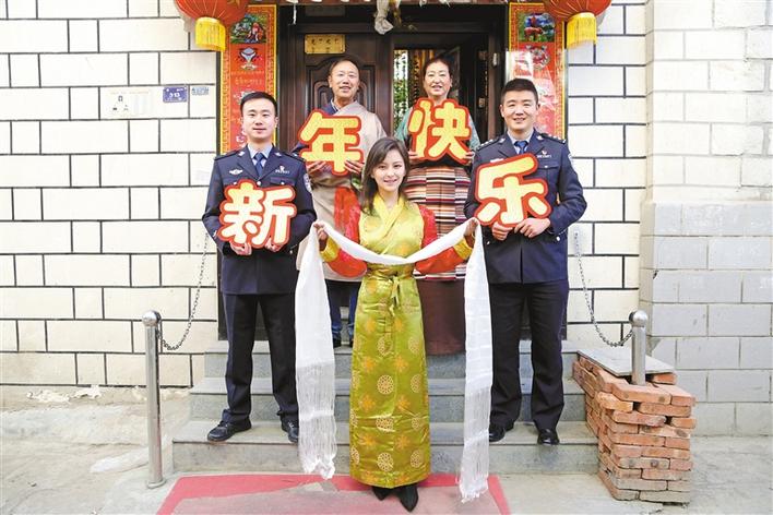 連日來,西藏出入境邊防檢查總站執(zhí)法調(diào)查支隊以“百萬警進(jìn)千萬家”活動為依托,開展“民族團(tuán)結(jié)一家親,民警結(jié)親賀新春”為主題的“尋親之路”?;顒又?,大家共同掛起紅燈籠,貼上春聯(lián),共致新春祝福。圖為結(jié)親民警在家門口合影。唐睿 仁青旺堆 攝