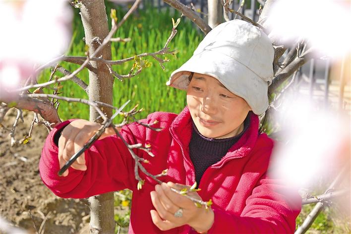 圖為群眾在自家庭院栽種果樹,并為果樹修枝。 記者 史金茹 通訊員 楊志宏 攝