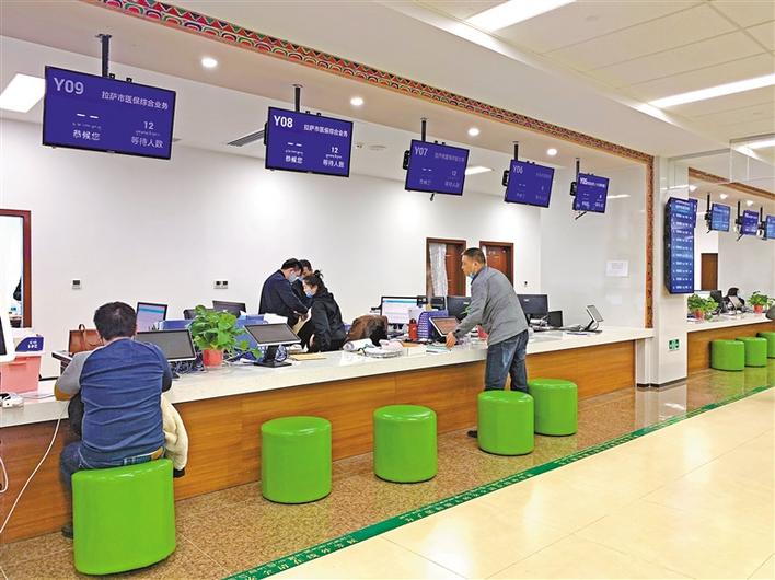 在拉薩市市民服務中心醫(yī)?!叭墶狈沾翱冢忻裨谵k理業(yè)務。記者 劉文濤 攝