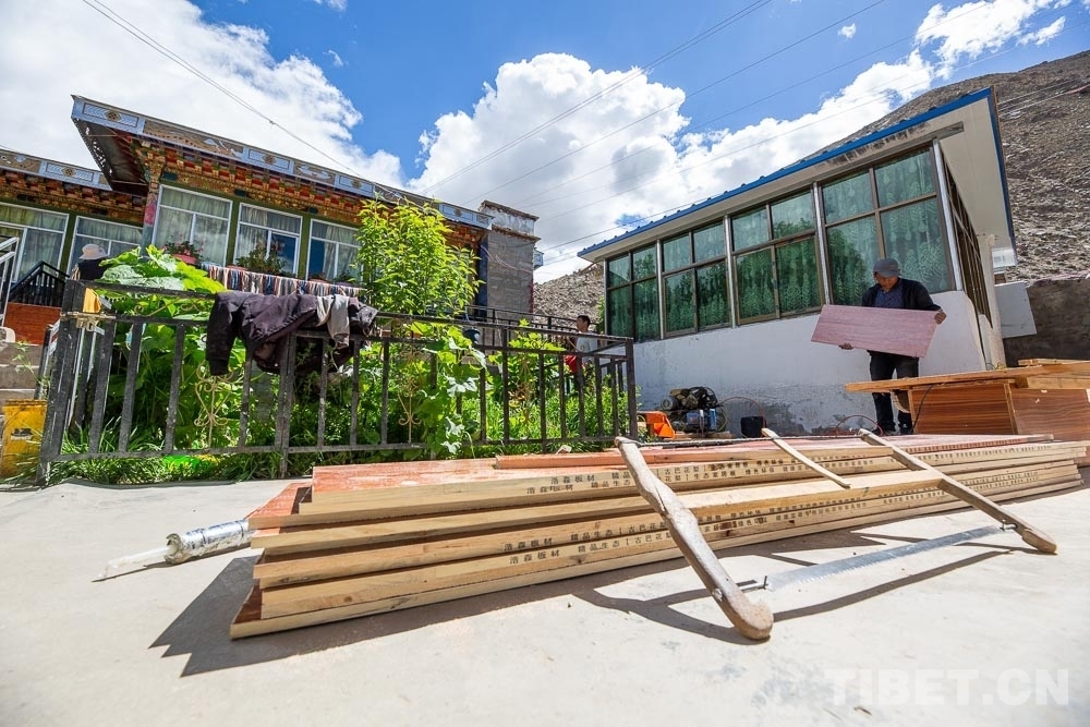 松卡村的一棟棟二層小樓錯(cuò)落有致,村民扎西正在裝修自家的客廳。如今的扎西,已不再是幾年前那個(gè)有很多無助、讓人心疼的她。