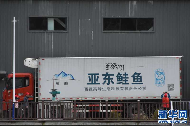 9月13日拍攝的帶有亞?wèn)|鮭魚標(biāo)識(shí)的卡車。新華網(wǎng) 張宸 攝