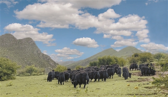 向巴饒丁一家生活發(fā)生巨變,離不開類烏齊縣大力發(fā)展牦牛產(chǎn)業(yè)。類烏齊縣平均海拔4500米,東有高山峽谷,西為草原牧場,植被豐富,為牦牛生長提供了絕佳的生態(tài)環(huán)境。