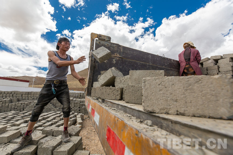 圖為山南市隆子縣日當(dāng)鎮(zhèn)加洛村村民桑珠的女婿平措(圖左)在磚廠運磚 攝影:趙耀