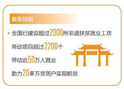 數(shù)據(jù)顯示,截至目前,各地非遺扶貧就業(yè)工坊已帶動項目超過2200個,帶動近50萬人就業(yè),助力20多萬貧困戶實現(xiàn)脫貧。